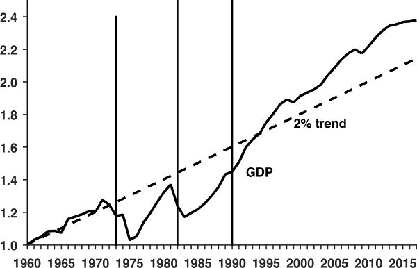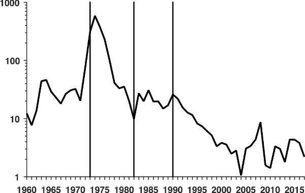 Period | 1960–73 | 1974–81 | 1982–90 | 1991–2016 |