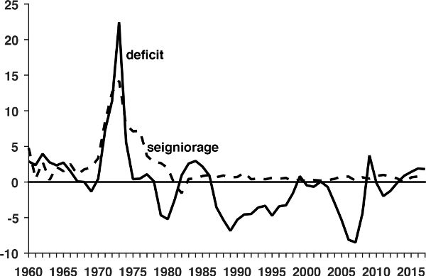 Figure 12. Seigniorage and public deficit, percent of GDP