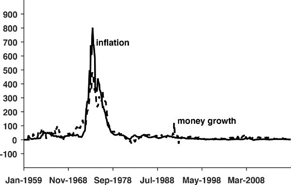 Figure 4. High-powered money growth and consumer price index (CPI) inflation (annual rates)