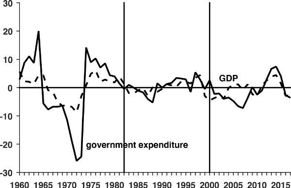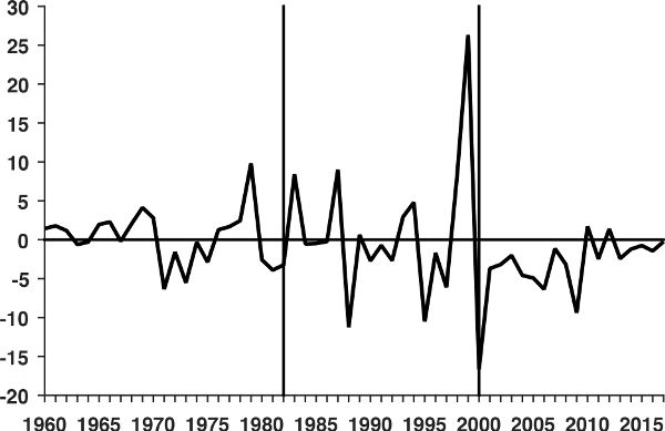 1972–81 (oil boom) | −1.34 | 2.60 | −0.23 | 2.05 | −0.48 | 2.61 |