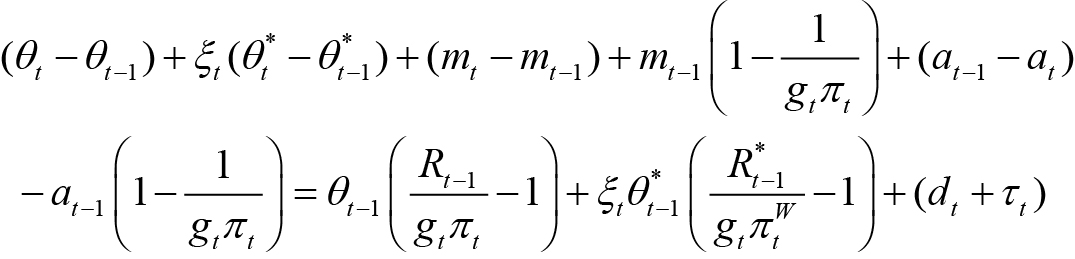 We modify (1) to incorporate two features relevant to the Ecuadorian case. First, since there are no publicly available statistics on Ecuadorian indexed government debt, we drop their corresponding terms from the budget constraint. Second, we include an additional option for financing deficits traditionally used in Ecuador: the use of previously accumulated assets of the central government. Essentially, these are deposits held in the Central Bank of Ecuador—usually in the form of money accounts—and thus the government earns no return on these assets. Including these two modifications yields a government budget constraint that can be written as