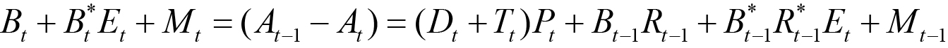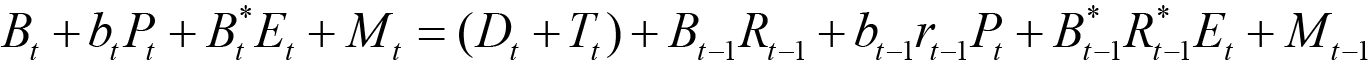 are their respective gross returns; Mt is the stock of money; Dt is the government primary deficit, and Tt are government transfers, which include transfers between the central government and the rest of the public sector, as well as the types of “extraordinary transfers” described in “A Framework for Studying the Monetary and Fiscal History of Latin America”; and Pt and Et are the price level and the nominal exchange rate.
