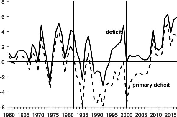 Table 1. Central government budget accounting results, 1960–2017 (percentage of GDP)