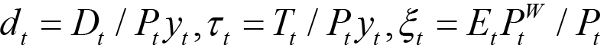 where Bt, bt, and are total nominal, indexed, and dollar-denominated debt in period t, in that order, and Rt, rt,
