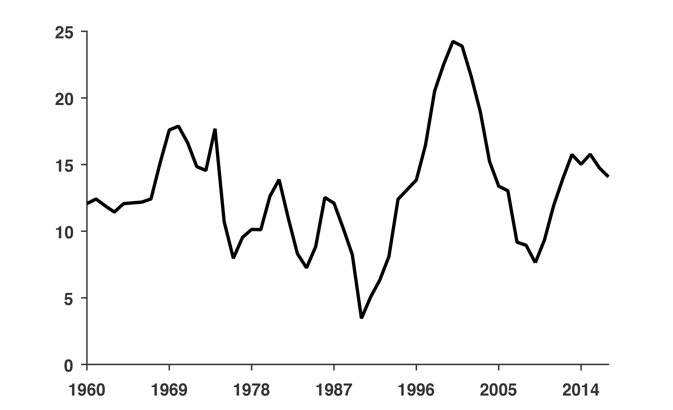 There is a sense in which the logic of the currency board had a substantial impact. As mentioned, it was designed to force a dramatic reduction in fiscal deficits, and along that dimension, it was successful: monetary dominance prevailed in the years that followed. As can be seen in figure 3, between 1960 and 1990, the deficit was below 2 percent only from 1966 to 1970. All other years it was above 2.5 percent, and during those thirty-one years, it averaged 4.7 percent of GDP. On the other hand, since 1991 it was above 2 percent (but barely so) in 1996, 1999, and 2001, and more recently in 2011 and 2013, but again, barely so. From 1991 until 2013, it averaged 0.75 percent. It seems apparent that the year of the structural break is 1991.