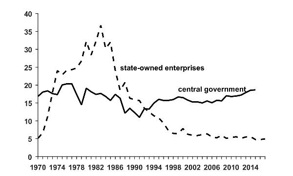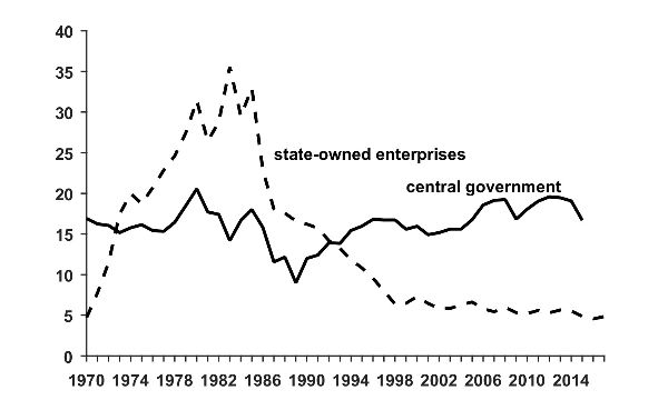 Figure 14. Revenue of central government and state-owned enterprises, percent of GDP