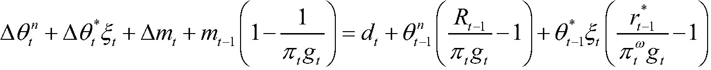 is inflation tax, where mt−1 is the previous period money supply as a percentage of GDP, πt is gross inflation (i.e., the ratio between current and past prices), and gt is gross GDP growth. The sum
