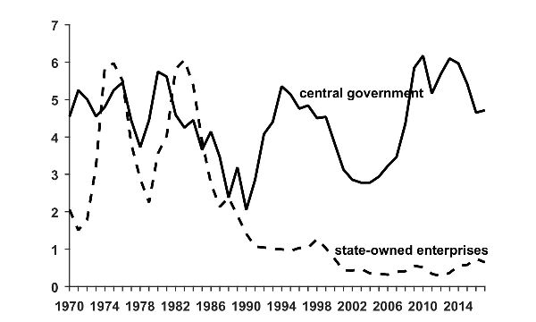 Figure 13. Expenditure of central government and state-owned enterprises, percent of GDP