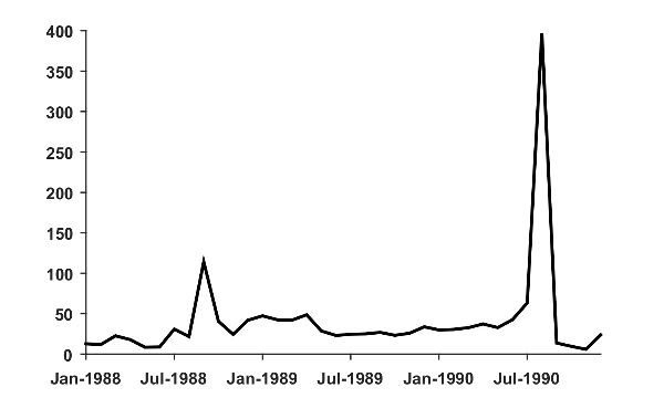 Jun-88 | 8.81 | Jun-90 | 42.58 | Jun-92 | 3.59 | Jun-94 | 1.14 |