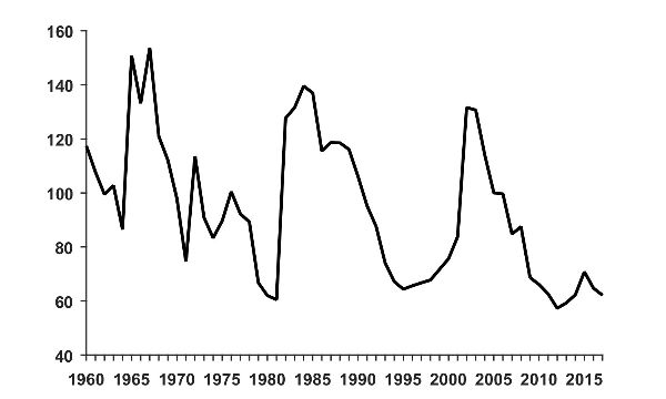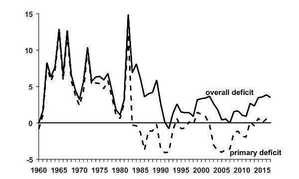 3. On average, the deficit of the public sector was 5.9 percent of GDP in 1960–1990 and 1.9 percent of GDP in 1991–2017.