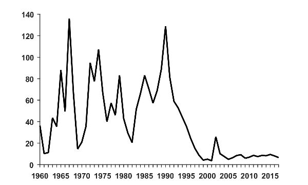 1960–1973 | 1974–1990 | 1991–2017 | 1960–2017 | |